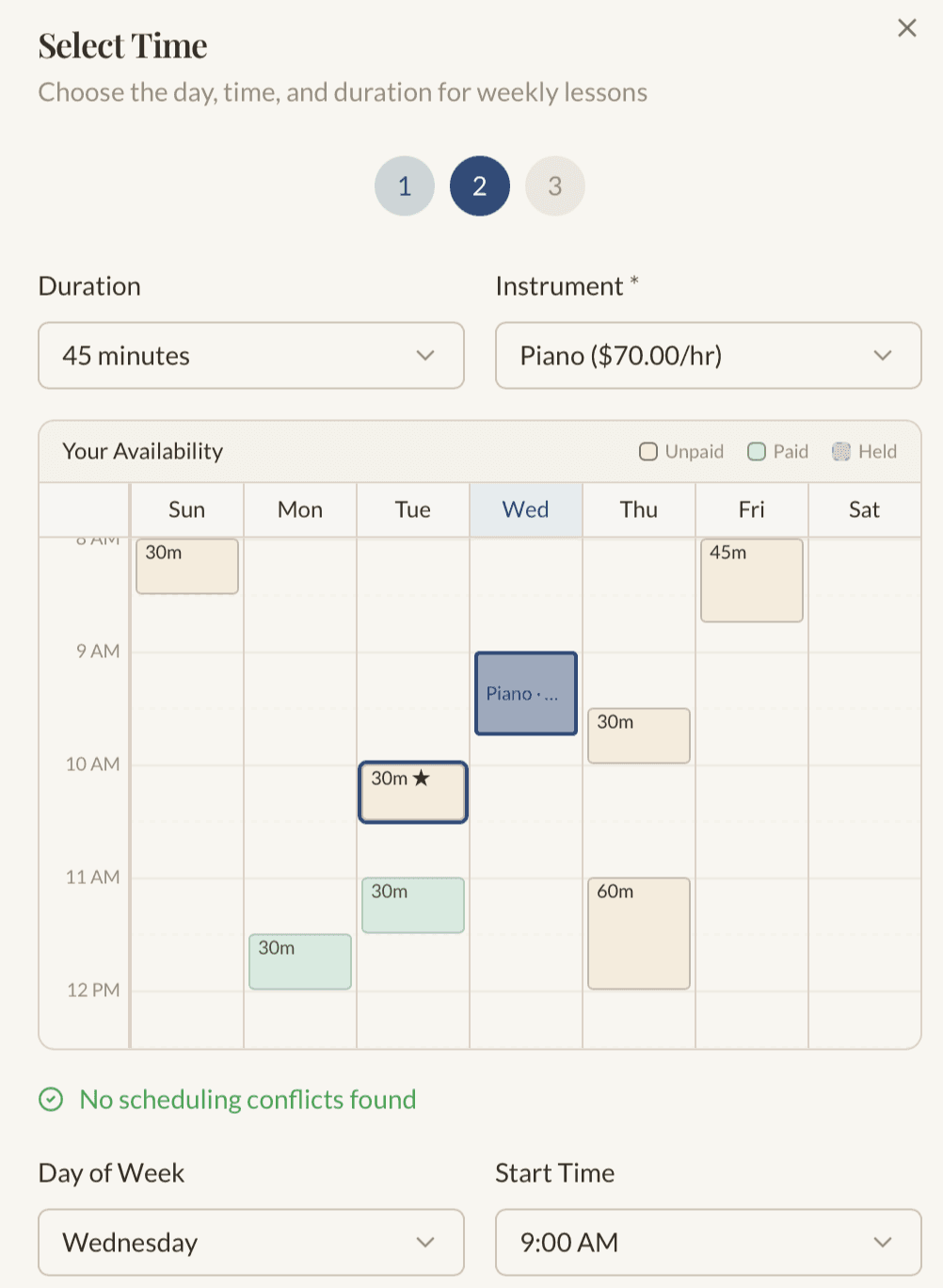Manage your calendar and your cash flow. Easily set your availability, manage recurring lessons, and handle schedule changes with a few clicks. When it is time to get paid, our system sends professional invoices automatically and handles online payments.